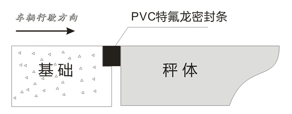 在車輛進入地磅秤臺兩端采用PVC特氟龍密封條完全密封,特氟龍材質具有穩定的溫度性能,高低溫變形量極小,較高的抗耐磨性,同時大大減少秤體前后晃動對基礎的沖擊力,提高稱重穩定性。
